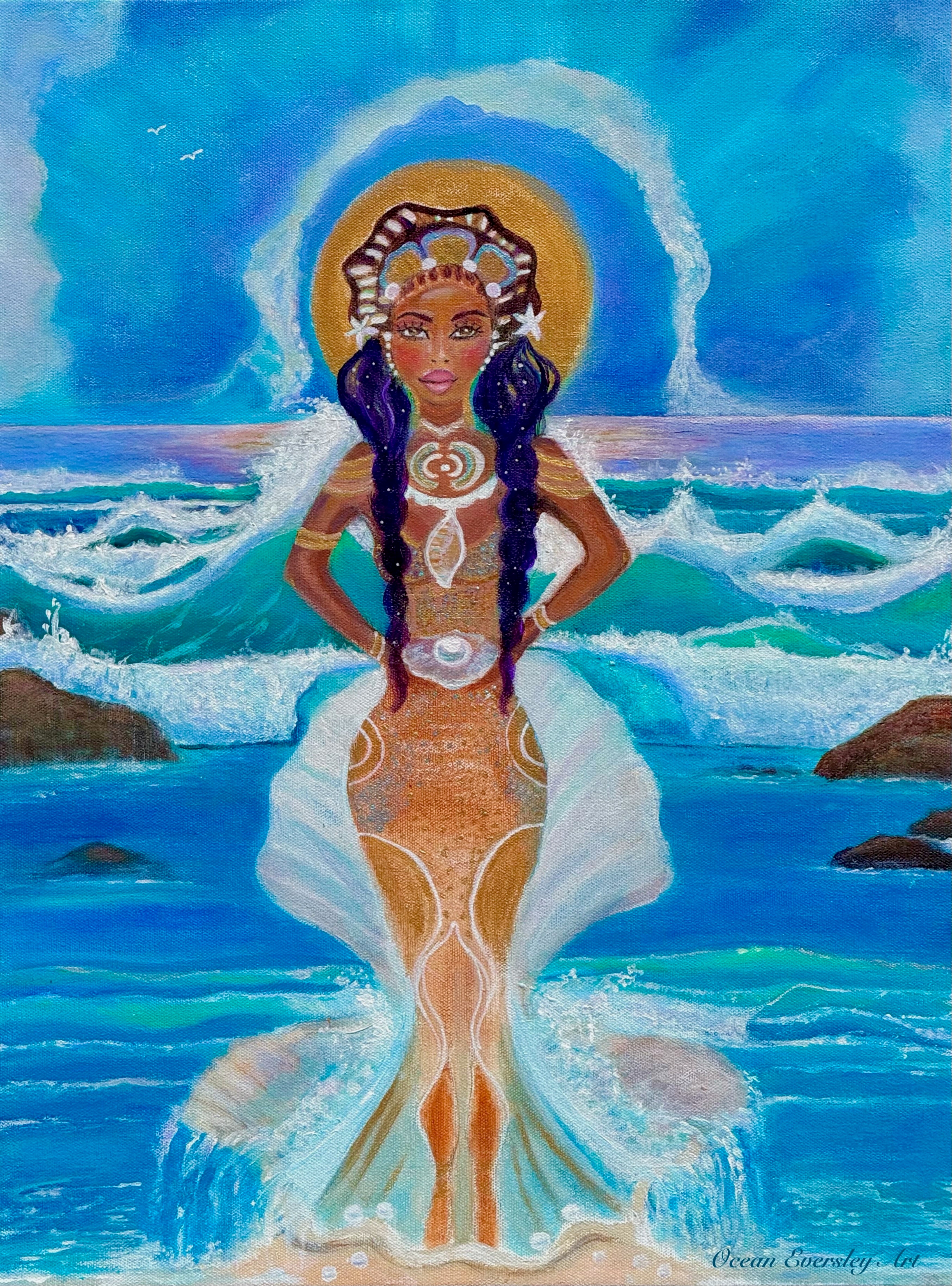 Through this portrayal, I sought to render her not just as a mythic figure but as a bridge between the vast, unseen depths of the sea and our everyday human experience. She calls us to remember what is holy in nature and heritage, to honor the beauty, power, and resilience that shape us—and to find wonder in the spiritual currents flowing beneath the surface of our lives.