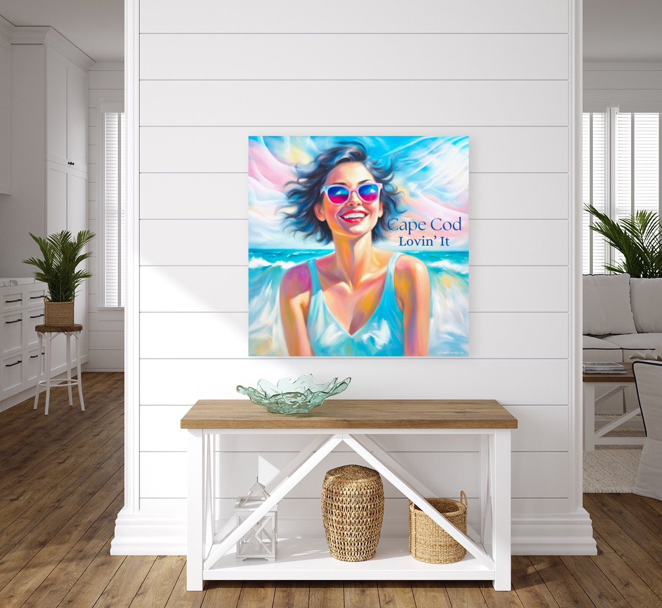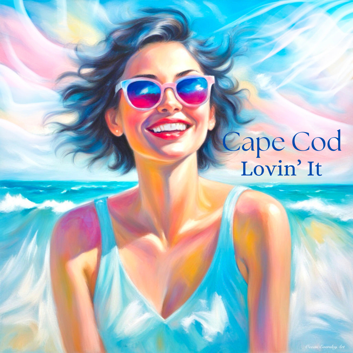 There’s a magic to Cape Cod that’s equal parts nostalgia and newness. Cape Cod Lovin’ It is my celebration of that summertime spark—the kind that flares up the moment your feet touch the sand, the ocean winks at you, and the sky opens in a wash of soft blues and cotton candy clouds. The painting’s bright, expressive strokes reflect the kinetic joy of beach days that stretch like honey, and the unmistakable feeling of being exactly where you want to be.