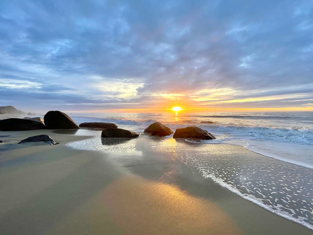 There are some winter evenings when the world hushes, and the sky writes poetry in light. I stood on the edge of the continent, wrapped in a heavy coat, breath curling like smoke, and witnessed the sun kiss the horizon with a touch of gold. I took this photo just before the light slipped away entirely, the waves whispering their timeless lullaby as the sky flared with molten color. The magic of sunsets is more than metaphor—their brilliance is born of science: during winter, the sun hangs lower in the sky, traveling a longer path through Earth's atmosphere. This scatters shorter blue wavelengths and leaves behind the longer reds, oranges, and golds. Add a layer of cold ocean mist and dense air particles, and you get this alchemy of warm light against a cool sky—like fire melting ice.