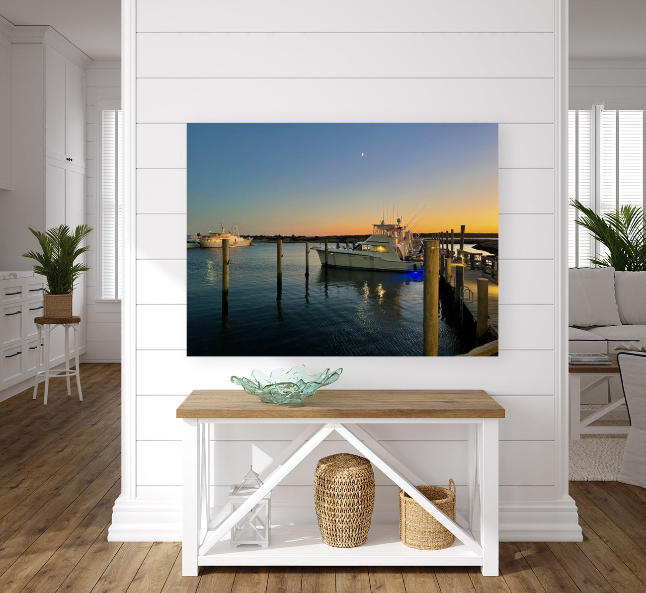 There’s a kind of magic that happens in Menemsha during the quiet lull of January. I took this photograph, Anchor Reflections, just as the last light dipped below the horizon, casting golden rays across the water like whispers of summer promises. The boats rested gently against the dock, their reflections flickering like candle flames on the tide. A crescent moon hovered in the fading sky, and for a moment, everything stood still—the sea, the sky, the breath of the island. I remember how the chill in the air felt crisp but not unfriendly, as if the Vineyard herself was holding space for something sacred and still.