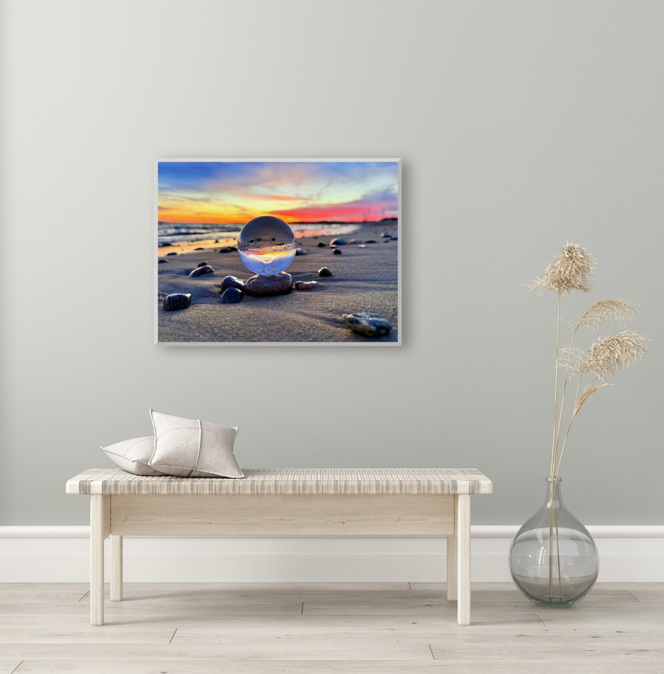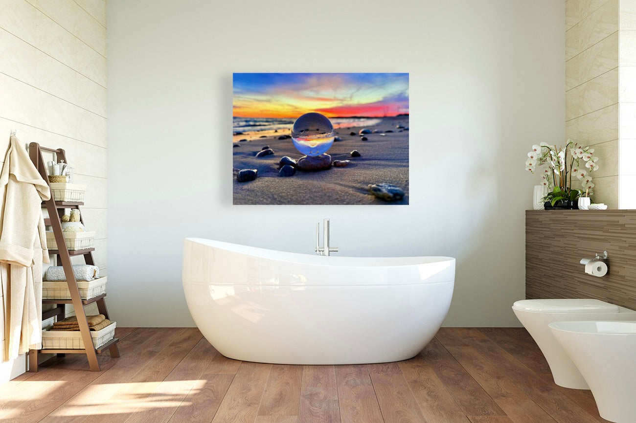 I set the crystal sphere on the sand at sunrise,